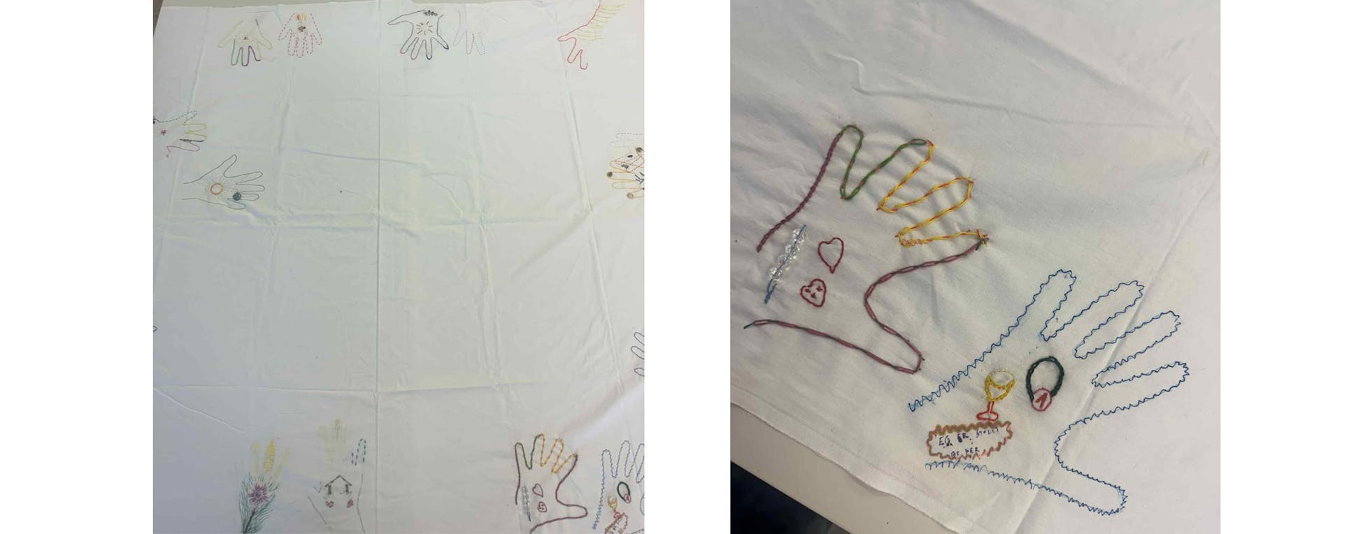 Við borðið í Ljósinu verður til rými þar sem fólk er ekki eitt. „Við vinnum í einn dúk og þá er hugmyndafræðin um það að þú ert ekki ein,“ segir Thelma. „Þú ert partur af samfélagi“.